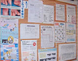 待合室には壁面を最大限に利用して積極的な掲示を行っている。